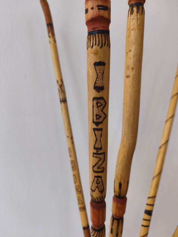 Grupo de 5 bastones de almendro tallados a mano.